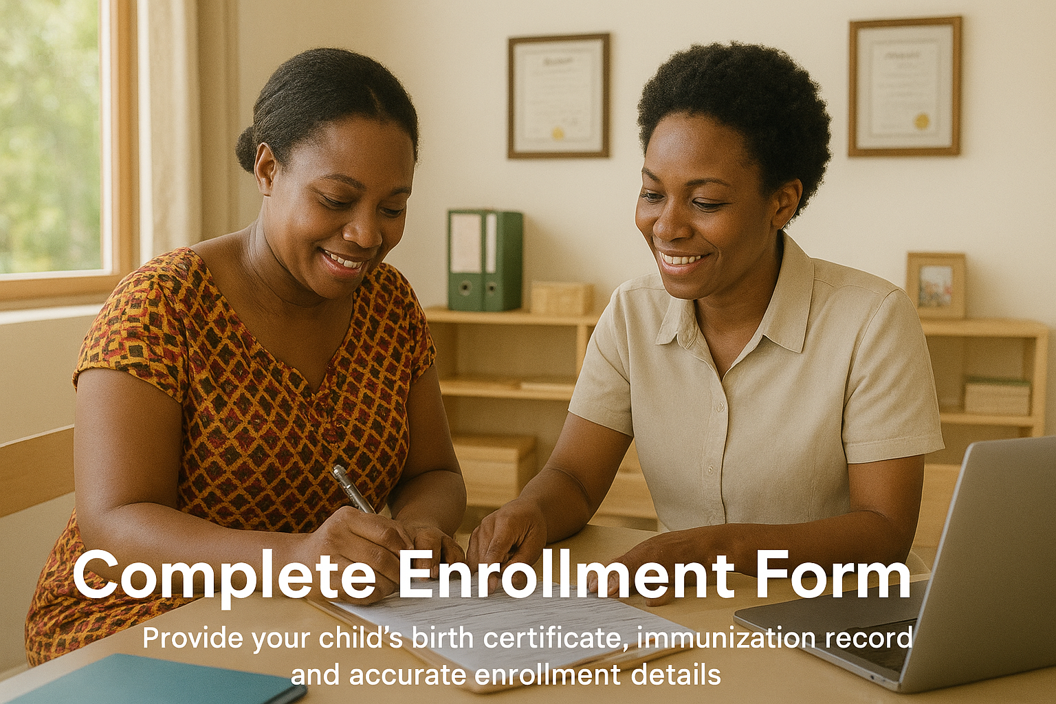 To enroll your child, you'll need to provide us with the necessary documents, such as your child's birth certificate and immunization records. Additionally, please complete the enrollment form with accurate and up-to-date information.